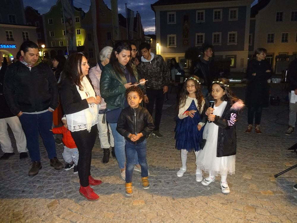 Den Beginn machte der Vertreter des sunnitischen Islam mit einer Erklärung zum Koran und einem liturgischen Gesang. Als Beitrag der kath. Kirche wurde der Sonnengesang des Hl. Franz von Assisi gesungen, bevor aus der Bergpredigt die Botschaft „Macht euch keine Sorgen, euer Vater weiß, was ihr braucht“ gelesen wurde. Viel Applaus gab es für zwei Kinder aus der Koptisch-Orthodoxen Kirche für ihre beiden Lieder, die ein starkes Gottvertrauen in den orthodoxen Kirchen ausdrückten. Eine klare Positionierung für Toleranz, weil Allah alle Menschen liebt, brachte der Beitrag eines Schülers aus Afghanistan, der der schiitischen Glaubensrichtung des Islam angehört. Eine Auslegung der Wochenspruchs „Lass dich nicht vom Bösen überwinden, sondern überwinde das Böse mit Gutem“ und das allen christlichen Kirchen gemeinsame Vater Unser bildeten den Beitrag der Evangelischen Kirche. Mit der Nennung von Notsituationen in verschiedenen Bereichen und einer Minute Schweigen wurde das gemeinsame Gebet abgeschlossen. Bei Tee und Kuchen klang der Abend aus.